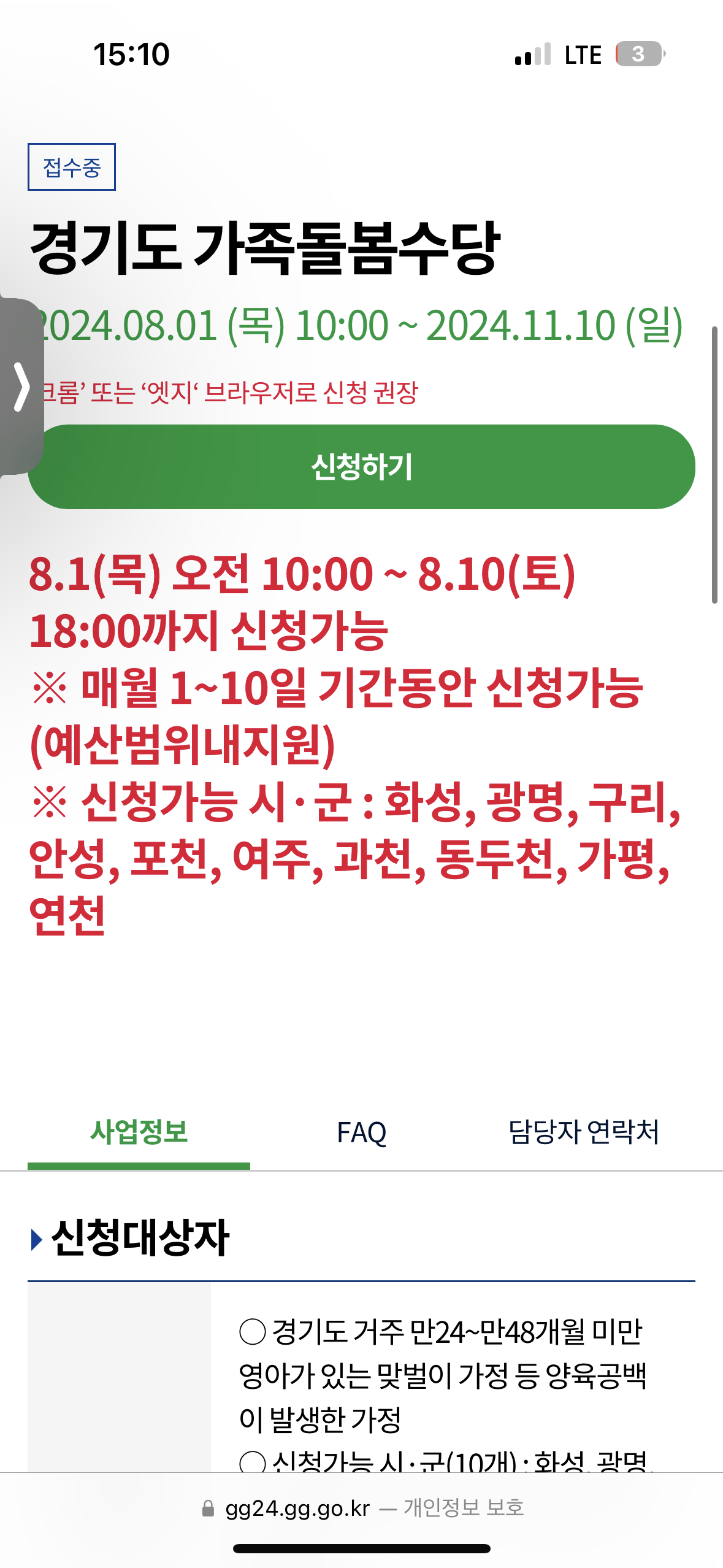 저희는 경기도민으로 이번에 경기도 가족 돌봄 수당을 신청했습니다. 경기도 가족 돌봄 수당 신청 관련 글은 아래 글을 참고하시면 되겠습니다.