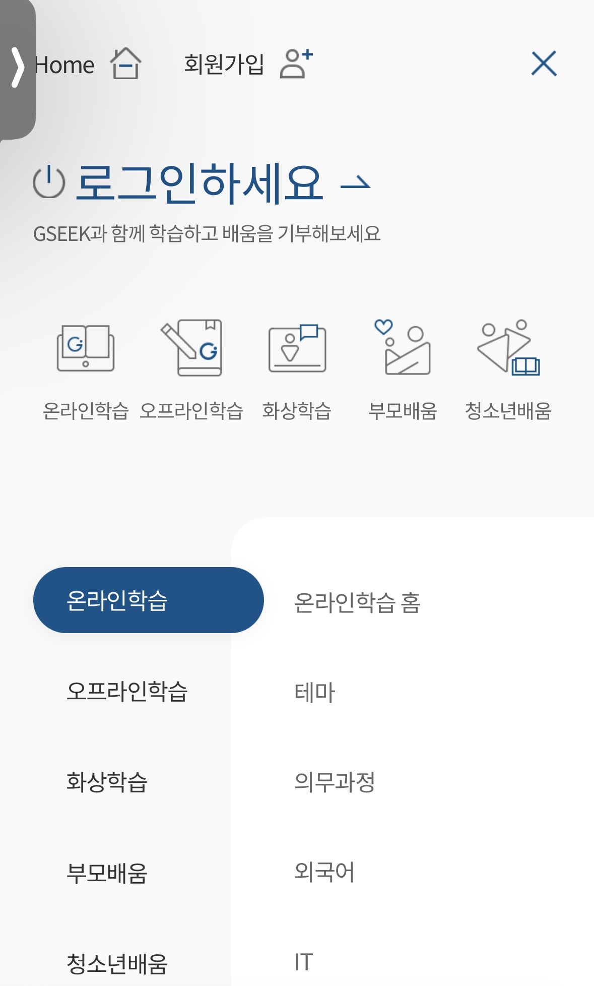 1) 경기도 평생학습포털 사이트로 들어가 회원가입하기