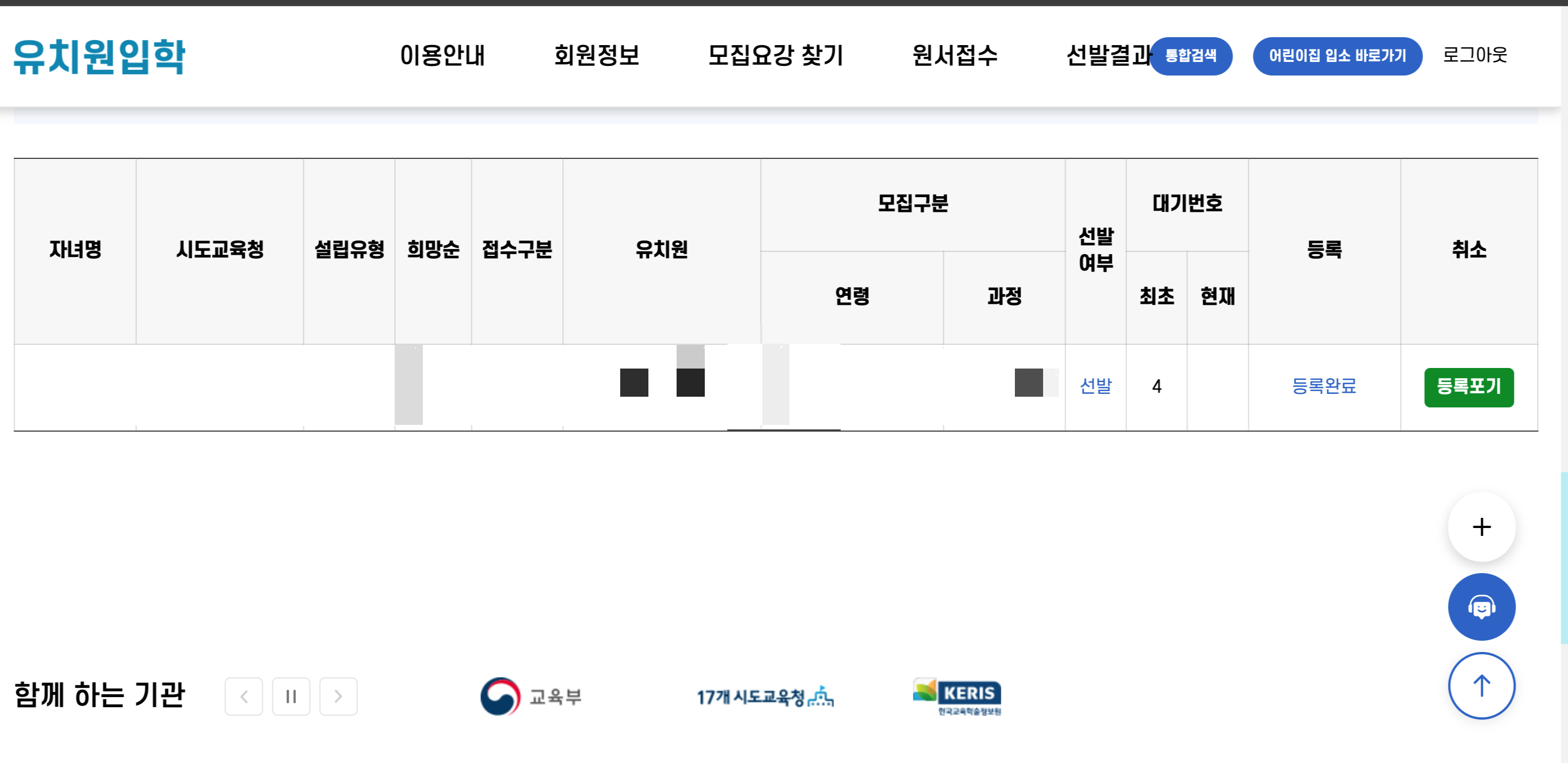 유치원 입소 결과가 발표난 이후로부터 2일 이내 등록을 눌러주어야 합니다. 기간이 다를 수 있지만 대부분 결과 발표로부터 2일 이내 등록을 해야 합니다.