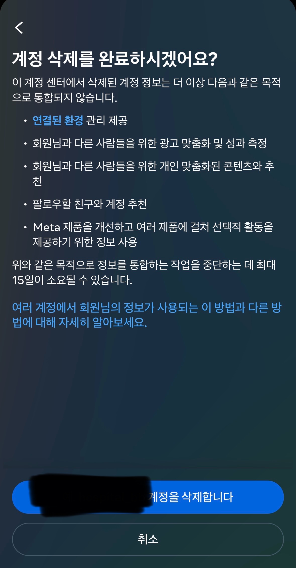 10. 하단의 계정을 삭제합니다 버튼 누르기