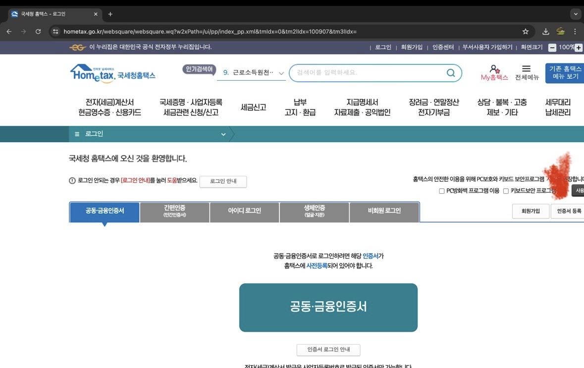 공동인증서를 발급하였다면 홈택스에 공동인증서를 등록하는 방법은 매우 쉽습니다.